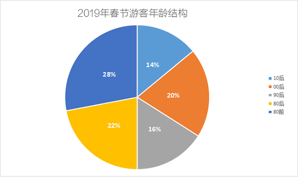 从中青旅遨游网春节游客年龄结构来看,90前后人群各占半壁江山,1990年代已成为游客的分界岭。尤其引人注目的是,00后乃至10后合计占比超过34%,在出游人群总量中,已是三分天下有其一。