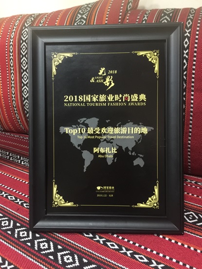 On January 22nd,the 2018 National Tourism Fashion Awards was held in Beijing. Abu Dhabi is awarded the “Top 10 Most Popular Travel Destination”.