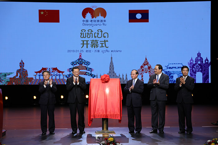 为落实中老两国领导人达成的重要共识,2019“中国—老挝旅游年”1月25日在老挝首都万象开幕。中国文化和旅游部部长雒树刚,中国驻老挝大使姜再冬,老挝人民革命党中央政治局委员、政府副总理宋赛,老挝人民革命党中央政治局委员、万象市委书记兼市长辛拉冯,老挝新闻文化旅游部部长波显坎,老挝工业贸易部部长、老中合作委员会主席开玛尼共同出席开幕式。雒树刚部长和波显坎部长在开幕式上宣读了两国领导人贺词。宋赛副总理致辞并宣布旅游年开幕。