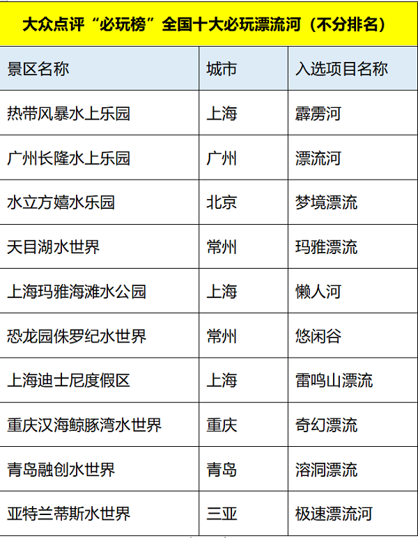 大众点评“必玩榜”全国十大必玩漂流河(排名不分先后)