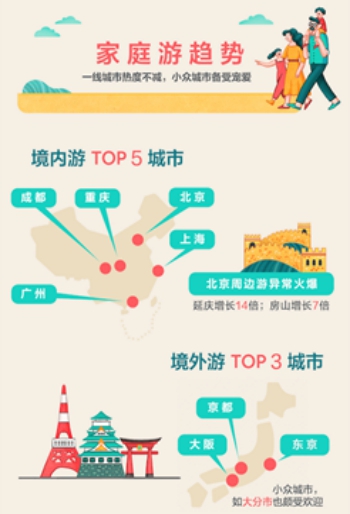 家庭和学生这两大暑期主力军的出游,均呈现“一线城市热度不减,小众城市备受宠爱”的趋势。对于家庭来说,在境内游的选择中,除了上海、北京、成都、重庆和广州等一线和新一线城市,他们也开始被一线城市的周边游所吸引,比如,北京周边的延庆预订量增长高达14倍,房山地区增长达7倍。