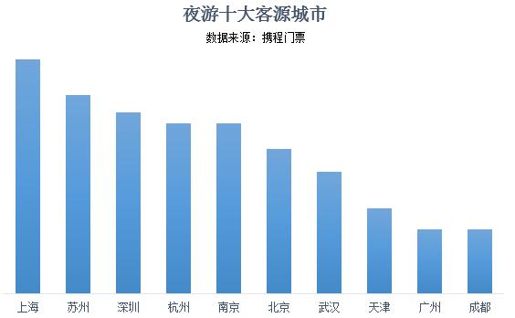 哪些城市的人更偏爱夜游?根据携程门票平台数据,上海、苏州、深圳、杭州、南京、北京、武汉、天津、广州和成都,成为夜游的十大客源城市,一线城市和新一线城市是主要消费人群。