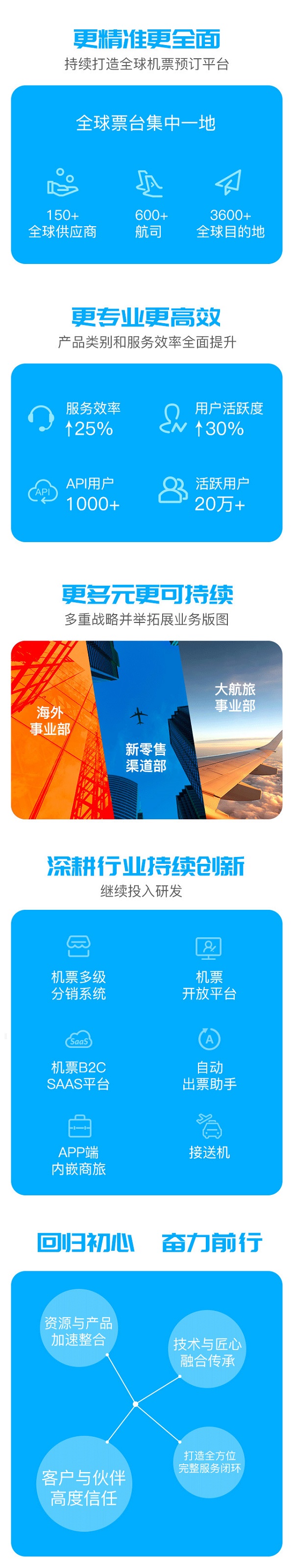 未来,焦笑斐先生将与杨锐先生一起,带领团队回归初心,加速整合,以产品为突破点和推动力,立足于互联网全球航旅平台,打造全方位完整服务闭环,努力成为大交通行业的领跑者,致力于为泛商旅客户提供有竞争力的机票预订服务,让我们拭目以待!