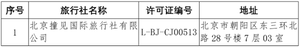 根据《旅行社条例》和《中国公民出国旅游管理办法》,自2019年7月23日起,取消以下3家旅行社的经营出境旅游业务: