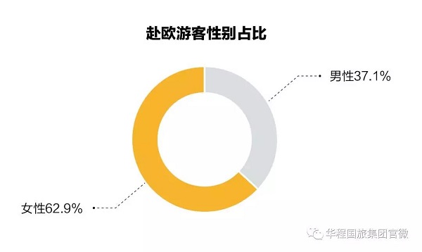 2019年上半年,从游客的性别年龄分析来看,赴欧洲游客女性占比62.9 %,男性占比37.1% 。游客年龄层上50、60后合计超过50%,70后以12.7%的占比位居第三。根据华程国旅集团的数据显示,上半年赴欧跟团产品中,爸妈放心游、春夏赏花产品备受青睐,成为最受关注的出行选择。从人均消费看,2019上半年我国游客报名欧洲跟团游,平均花费11920.7多元,费用成本相比2018年略有上升。从产品的钻级来看,2019年通过华程国旅集团预定的欧洲旅游产品中,高钻级产品占比近8成,其中,四钻舒适型占比63.0%,五钻及以上产品占比12.1%。
