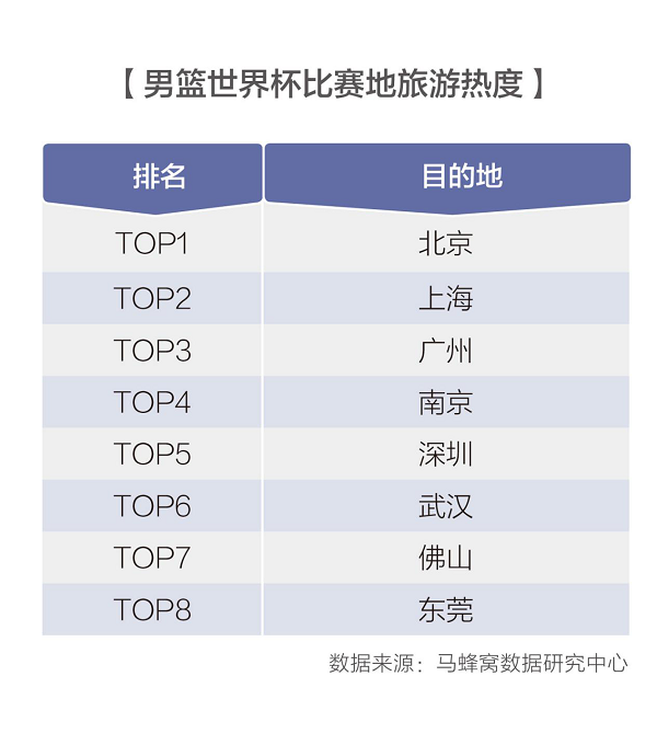 马蜂窝发布2019体育旅游大数据 男篮世界杯掀起观赛游热潮
