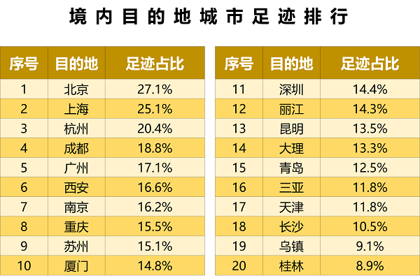 境内足迹头部效应明显,小众目的地潜力大