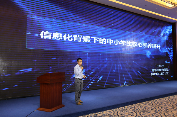 清华大学出版社副社长庄红权先生的《信息化背景下的中小学生核心素养提升》演讲更是深入人心,他分析了素质教育发展中的痛点,提供了一些解决方案,比如,可通过个性化学习服务系统、学生自助展示、实践引领、社区共建活动、国际活动、全国信息化展示等方向发展素质教育。