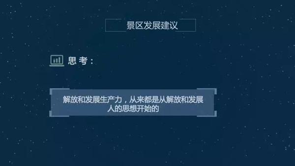 “两山”理论是旗帜,我想两山理论并不只是仅仅一个景区或者是旅游业的指导。更应该是我们整个社会经济发展的指导思想。只有深刻理解了这一点,景区,尤其是传统景区才能改变我们守常心态,两山理论提出来,有的地方政府觉得我守好绿水青山就行了,不用转化。还有的不是可以转化,是不会转化。深刻理解“两山”理论的思想。