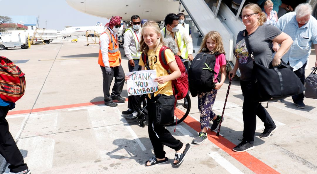 旅客们终于结束了海上的漂泊,即将由金边机场返回各自的国家。