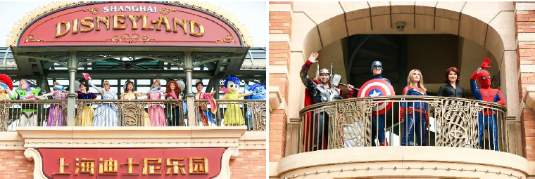迪士尼朋友们在主入口拱廊上惊喜亮相,在游客入园时挥舞色彩斑斓的旗帜,欢迎大家回到上海迪士尼乐园。