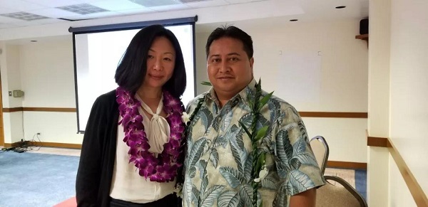 总督Ralph DLG. Torres与塞班旅游协会董事Tom Liu迎接运送防疫物资的四川航空飞机