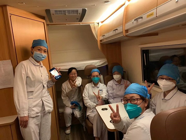 一线医护人员在上汽大通房车内