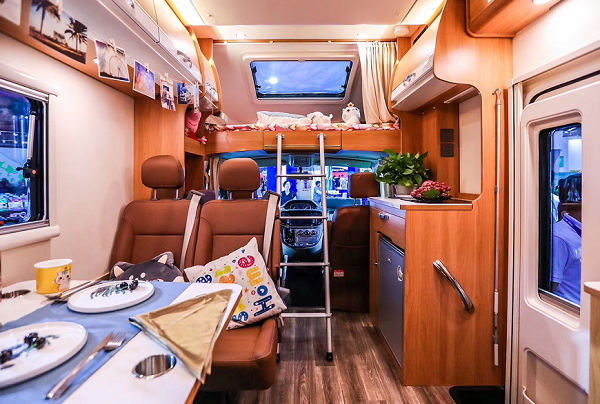 上汽大通房车在地摊经济中“火”了,首先得益于房车这一新的车型产品本身的魅力,上汽大通房车长5.9米,高3.0米,宽2.2米,三面车身可以与品牌合作设计主题车贴海报,车内空间更可进行品牌产品的陈设,是一台移动的品牌宣传车、产品展示车;车内有厨房、电磁炉、冰箱、空调、卫生间、电视,无论是寒冬或酷暑,无论何时何地,车内均可休憩或进行各类商务洽谈,成为“移动的展示厅”。