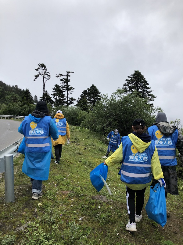 (“美丽公约”志愿者在国道318沿线开展先锋清理行动)