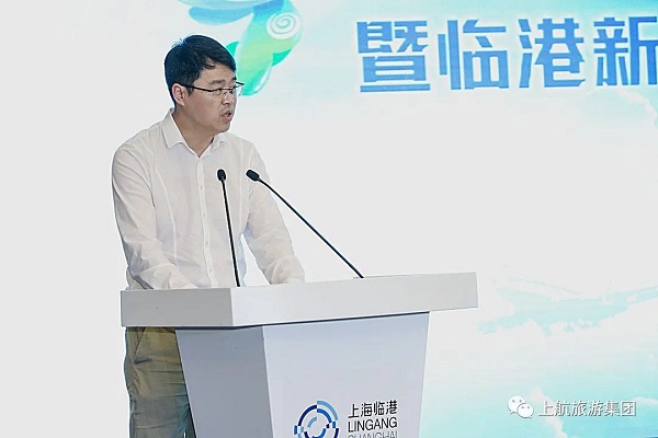 ▲上海市浦东新区旅游业协会会长靳黎军代表入驻企业发言