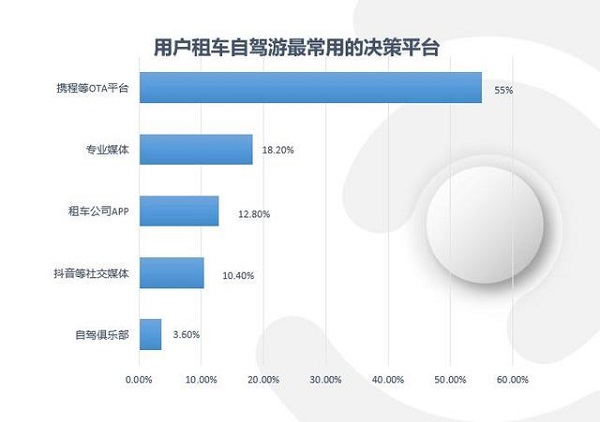 在租车信息的获取方面,2020年上半年,在线旅游平台、社交媒体等影响用户的强度明显增加。与此同时,用户做租车出游的决策时,最终选择携程等一站式平台的比例明显上升,因为可以提供车辆以外的更多服务,传统专业租车公司的比重有所下降。