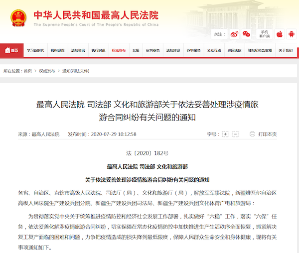 最高人民法院、司法部、文化和旅游部联合发布通知:依法妥善处理涉疫情旅游合同纠纷;因疫情造成游客滞留,新