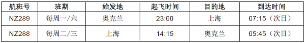 新西兰航空奥克兰—上海航线已顺利复飞一个多月,并获批于本月22日起增添运力至每周两班。