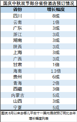往年,国内酒店的预订周期集中在放假前一周。但刚进入8月,去哪儿平台上十一酒店预订量就有上升的趋势。9月还未过半,不少热门目的地的酒店已经订“爆”了。