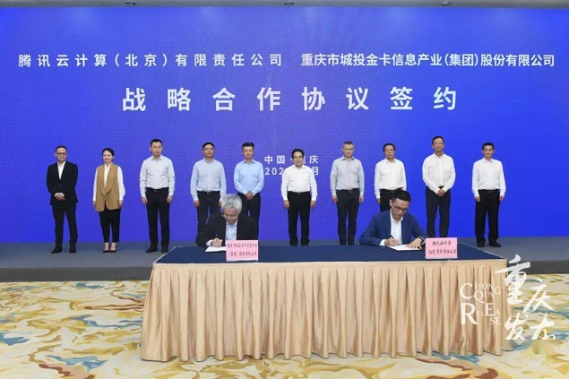 现场,腾讯云计算(北京)有限责任公司与重庆市城投金卡信息产业(集团)股份有限公司也同步签订战略合作协议。