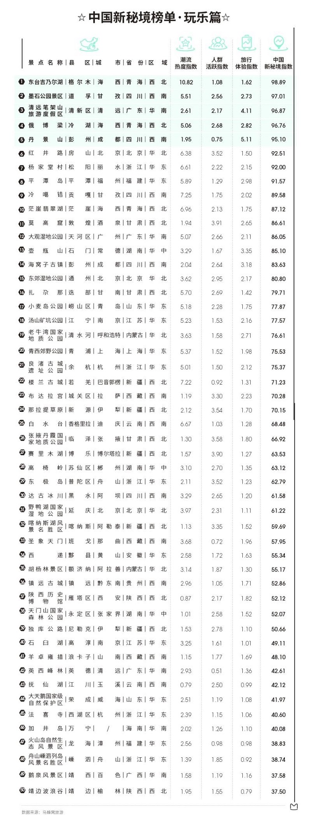(附:马蜂窝2020“中国新秘境”榜单)