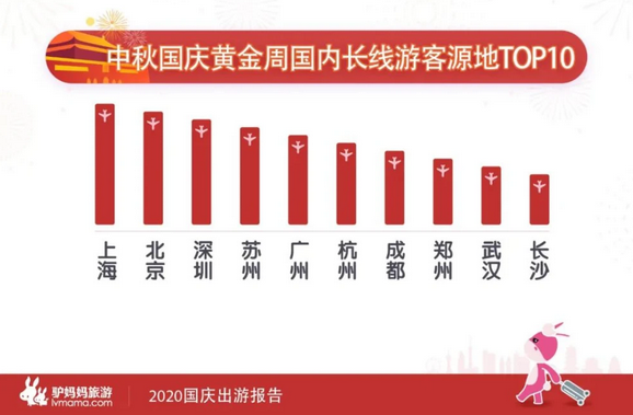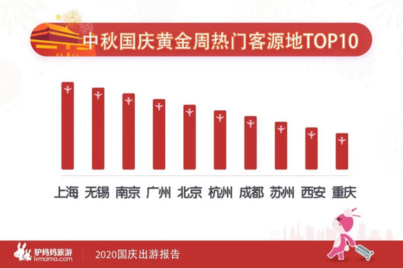 10月8日,驴妈妈旅游网发布《2020中秋国庆出游总结报告》(以下简称《报告》)。《报告》显示,国庆期间,山水名胜、文化游、IP乐园依然是最热主题类型,但夜游、红色旅游人次增幅大;相比往年中高端自由行、精品小团,成为国内长线游人气产品王;周边游10月3日、4日进入高峰期,讲究错峰出游、升级体验。另外,上海、无锡、南京、广州、北京、杭州、成都、苏州、西安、重庆位居黄金周热门客源地TOP10。