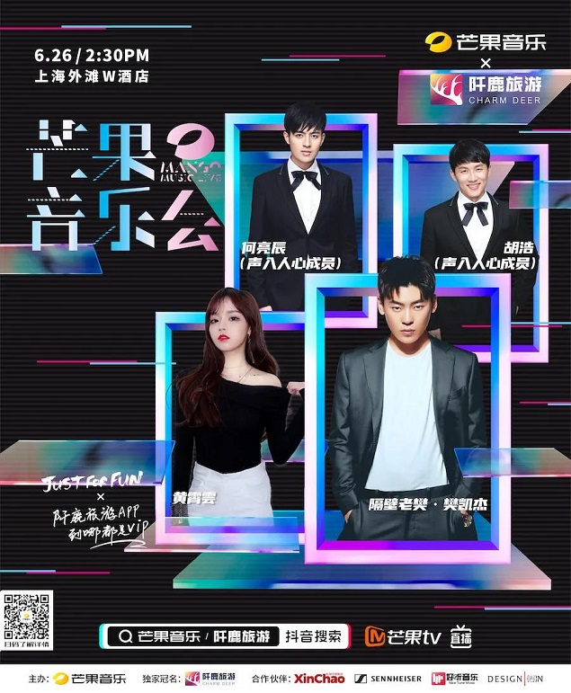 但今年对我来说也是很有意义的一年,为了振兴如此惨淡的旅游行业,我们选择在2020年端午节这个特殊的日子里在上海外滩W酒店举办了一场《阡鹿旅游芒果音乐会》,这场音乐会不单邀请了阡鹿的会员、合作伙伴、抗疫第一线的医护粉丝前往现场聆听隔壁老樊、黄霄云等年轻歌手的现场演出。更结合抖音、芒果TV等平台给无法前来的粉丝、音乐爱好者现场直播音乐会盛况。也是因为这次的疫情给了我们带来了可以多种多样的呈现形式,让我也启发颇多。