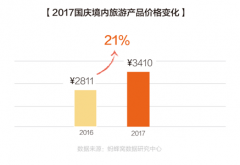 旅游产品价格方面,今年国庆期间境内旅游产品的均价为3410元,同比2016年增长21%。前十热门境内目的地中,海南三亚的旅游产品均价以4665元达到最高,同时它的涨幅也最快,达26.5%,超过境内平均水平。