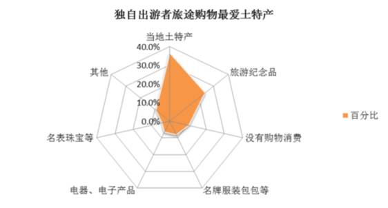 相比家庭、情侣、朋友结伴出行,独自出行的人在在旅途购物消费方面也有自身的特点。数据显示,独自出游者在购物上的人均花费为3615.4元/人,与有同伴出游的人群相比花费水平略低。旅游购物方面,近90%的独自出游者会在旅途中购物,在他们的购物清单上,土特产和旅游纪念品占据高比。