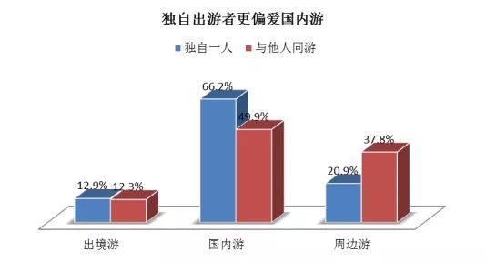 统计数据显示,目前我国单身成年人已经超过2亿,撬动了旅游、租房、外卖、游戏等多个领域的消费,带火“单身经济”。“光棍节”之际,同程旅游在推出“11.11品质狂欢盛典”活动的同时,发布了一份《独自出游者研究报告2017》。该报告中同程旅游研究院以同程旅游用户中选择1人单独出游者为样本,间接研究了单身人士的旅游消费偏好。