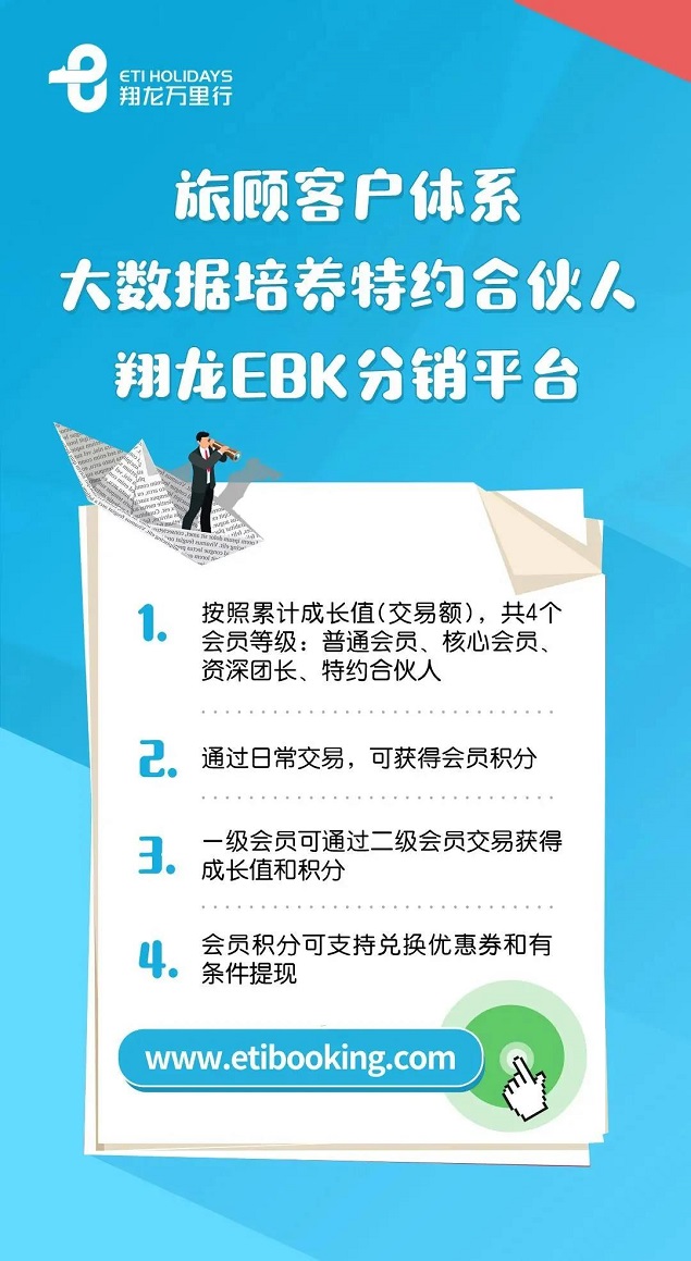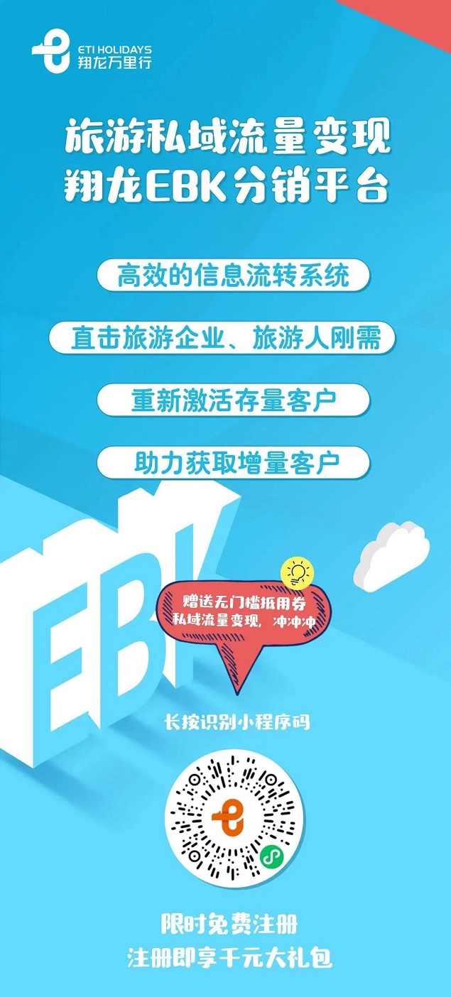 正如翔龙EBK分销平台的口号——一个让旅游人轻松赚钱的平台。翔龙EBK分销平台希望与伙伴们携手共同成长。