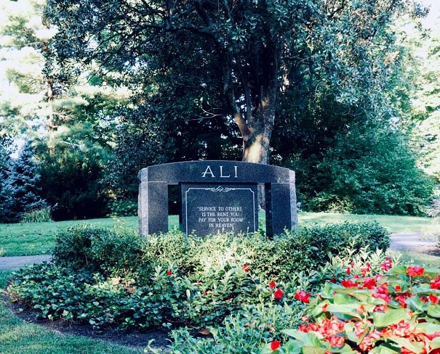 清晨我来拜访阿里墓地。绿树成荫,鲜花簇拥,四周一遍寂静,青石碑上刻着“ALI”。长眠地下的拳王,来得精彩走得释然,他做了自己能够做的一切。
