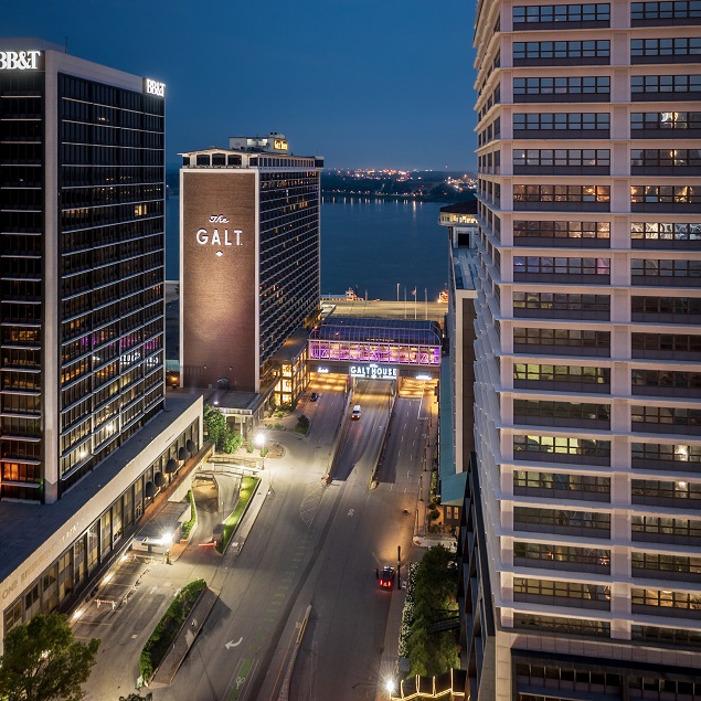 重要活动的官方酒店高尔特之家 (Galt House Hotel) 独具地方特色。它高端大气,也是唯一的岸边酒店,有1,300多个房间与套房、5家餐厅酒吧、53个会议室。它最早建于1835年,历经烧毁、关闭、拆除。今天的高尔特建于1972年,新近完成了8000万美元的翻新工程,双塔之间的走廊使用玻璃全封闭,自然采光,开阔舒适,是休息和学习的好去处。从酒店步行几个街口,即可到达阿里中心、棒球棍厂、博物馆区(Museum Row)、若干波尔本酒厂和啤酒厂。市中心的重要景点很集中,十分便利。