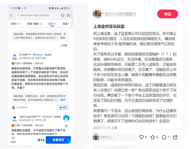 多个社交平台上网友齐吐槽,留有备注视而不见、有房拒不更换,亚朵“质不配价”,网友质问亚朵:为何放瑕疵房给顾客,是否是捡软柿子捏、挑战顾客底线.