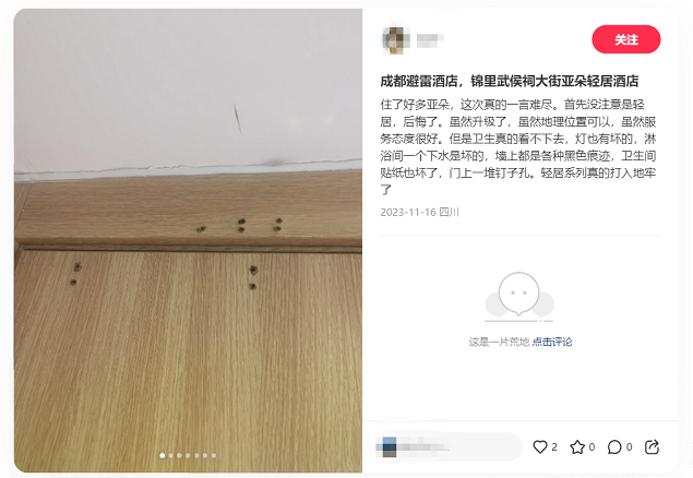 一网友发文吐槽“入驻亚朵大踩雷”,下面众多网友留言吐槽卫生等各种问题,更有网友称亚朵是“这辈子住过最烂的酒店”!