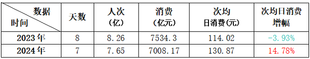 如果我们再对比下2024年全年其它假期的数据,则更加显而易见,今年十一黄金周次均日消费增幅强劲,足以和年初的元旦假期遥相呼应,完全算得上一个漂亮的收官。