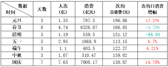 但算每日平均值的话,今年十一黄金周的各项数据,显然还是要更胜一筹。如下图: