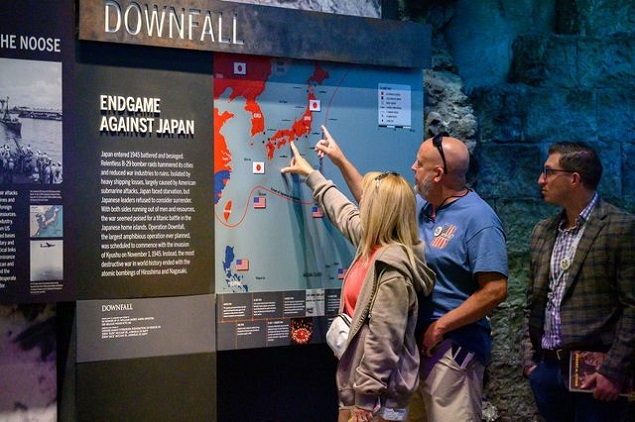“通往东京之路”(Road to Tokyo)再现了从珍珠港到东京湾的历程,展示了关键战役,用沉浸式场景、大型实物展品、口述历史和短片等,陈述了对抗顽固日军的陆海空三军的协同拼搏与战略,比如 “跳岛战术”。“中国-缅甸-印度:太平洋战争的第二战线”展厅揭示了该战区的战略意义:当美军与日军11个师在岛屿交锋时,盟军在此牵制了40个日军师。