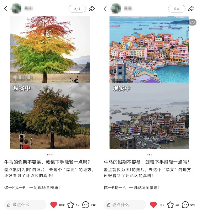 对于这类踩坑,除了过于冷门小众的目的地外,剩下的去处旅游者多做一些功课,多看一些游客发的经验帖或者游记,还是可以幸免于难的。而且,确实要怪部分目的地官方号发布的百万后期宣传片误导消费者,也与博主为营造“我活得优雅又轻松”的完美人设又或者是拿钱办事只说优点脱不开关系——害人不浅,让诸多种草帖的真实性被打上问号,让旅游者费心甄别多方求证,徒增做攻略的时间。